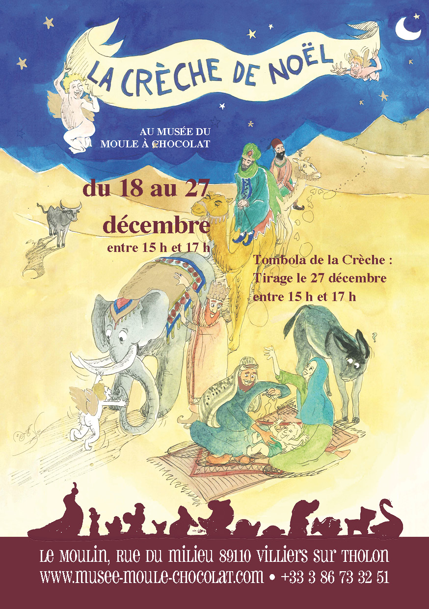 et se fera une fête de vous recevoir du 18 au 28 décembre 2023 de 14 à 18 heures pour voir la nouvelle crèche en chocolat.